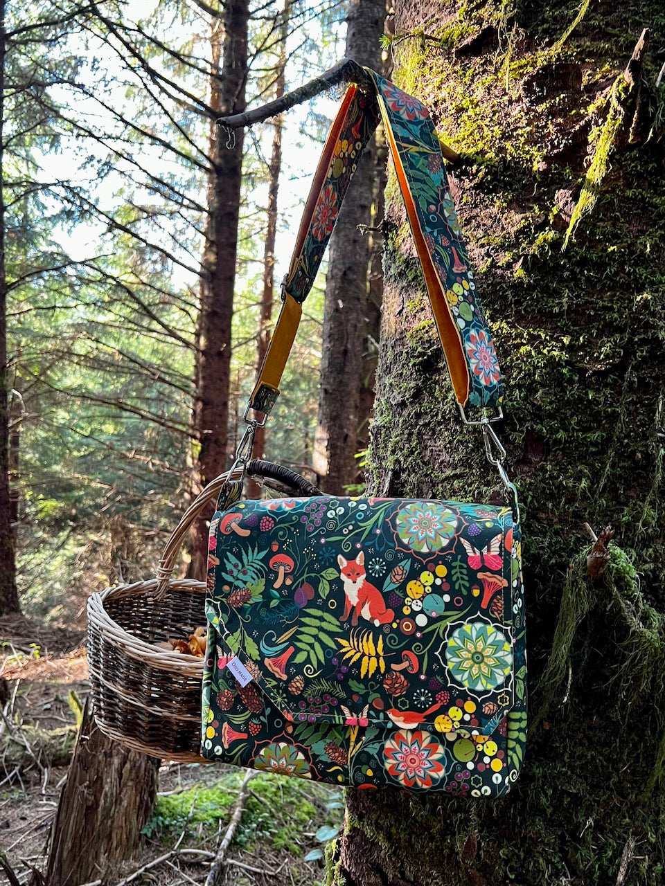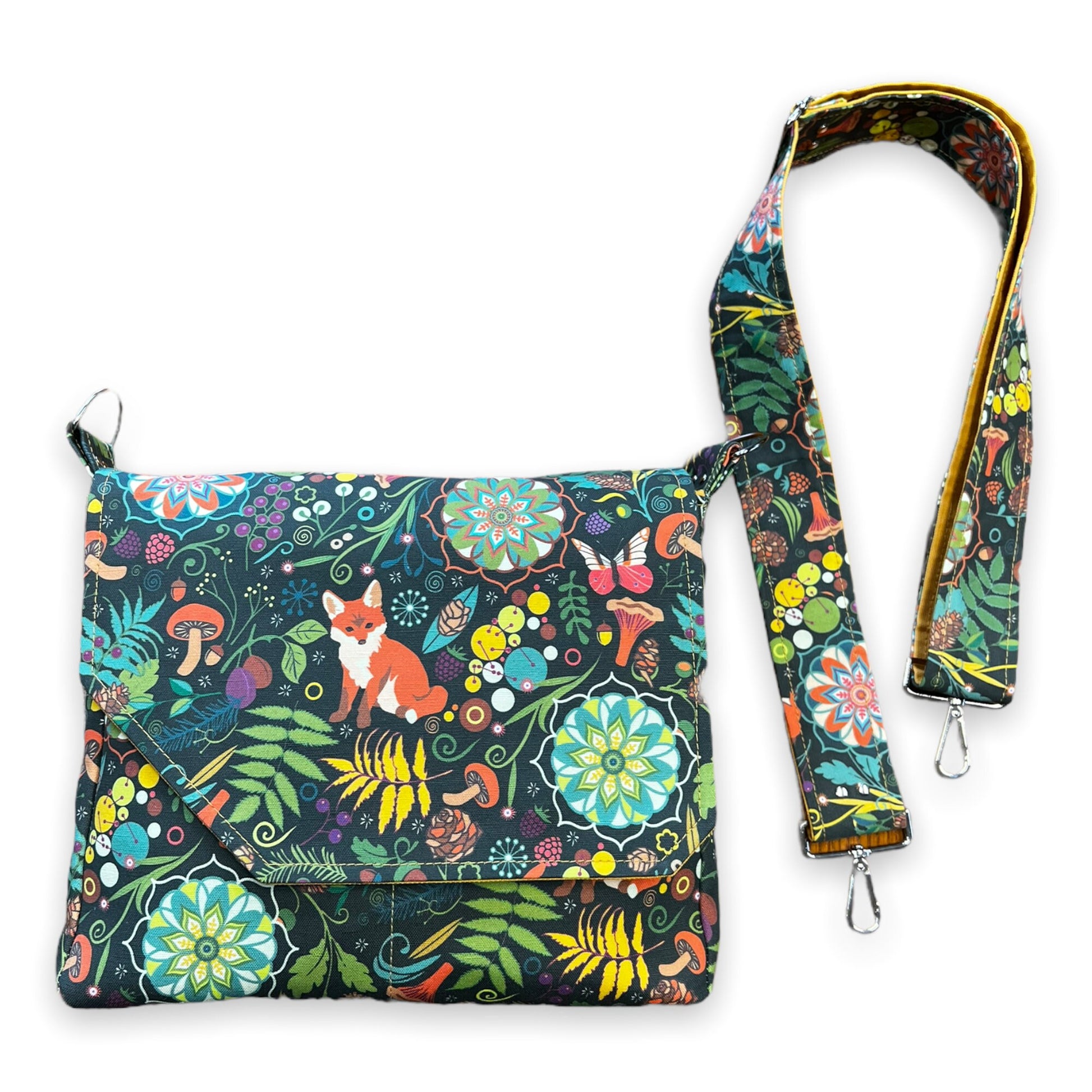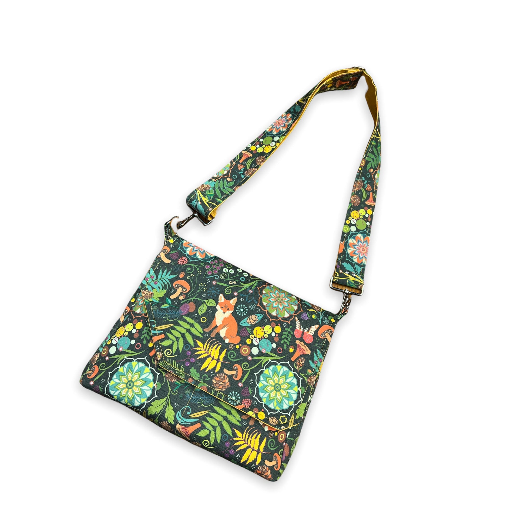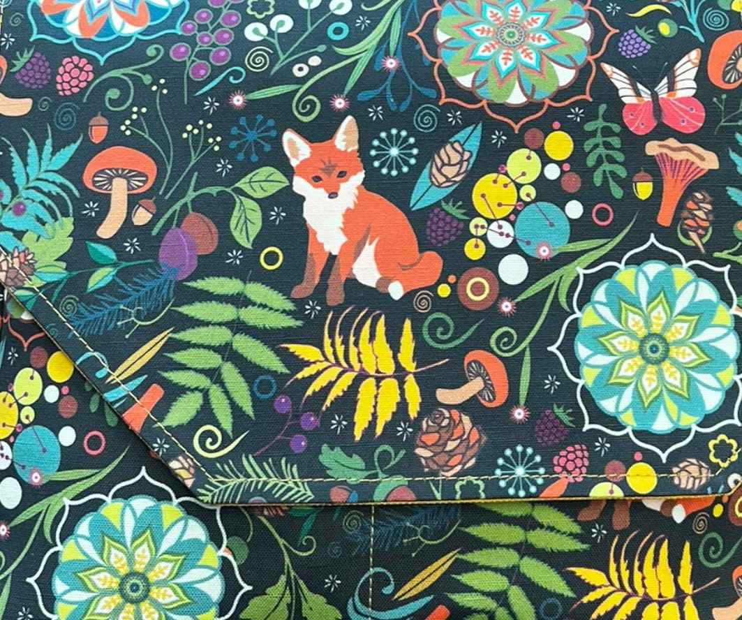 Fox print crossbody bag, fox print purse, cottagecore woodland critter messenger bag.