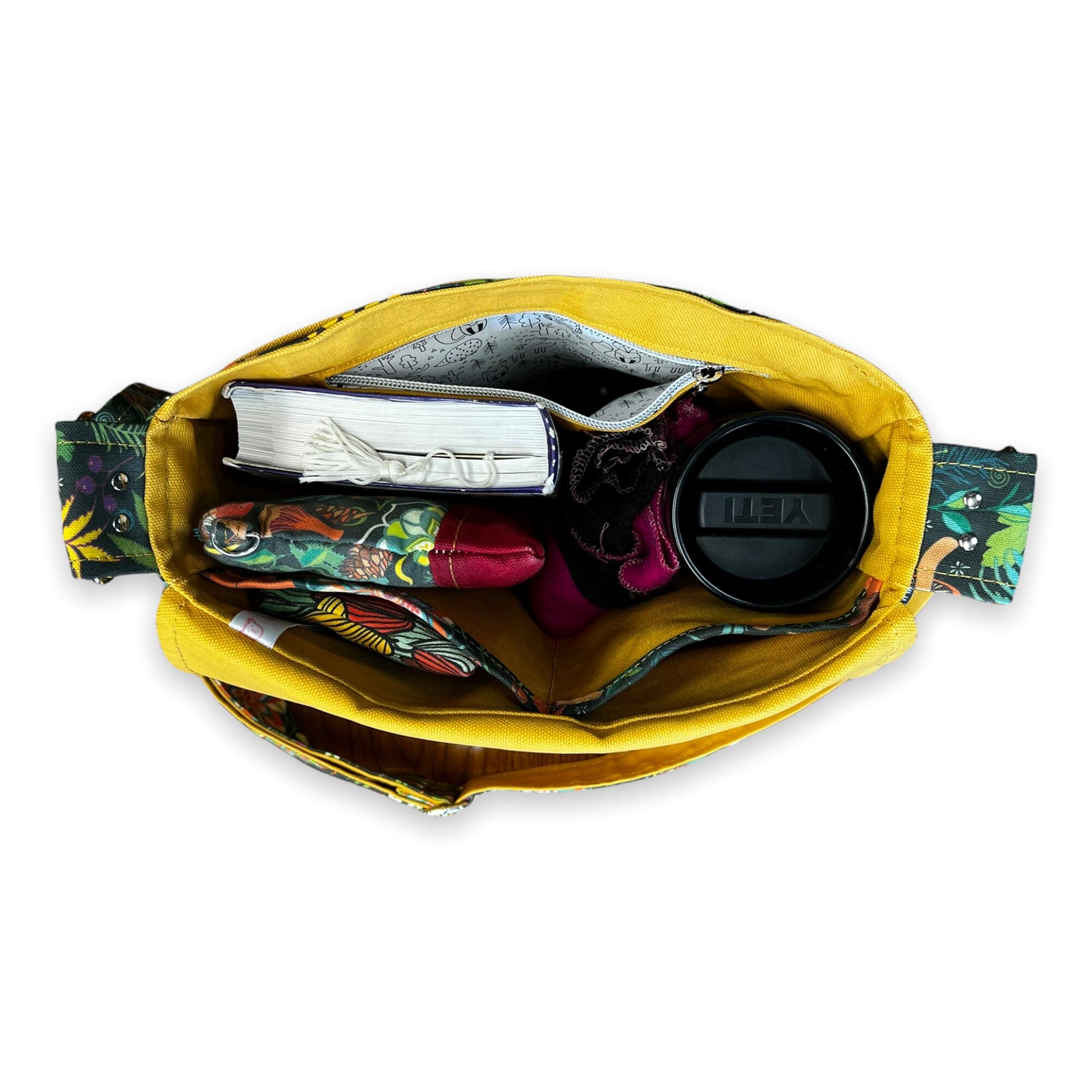 The bag is handmade in Oregon with high quality cotton and linen fabric! The exterior fabric is linen-cotton canvas woven from 55% linen and 45% combed cotton and printed with ecologically-safe Ultra-Color technology. The interior fabric- is a heavyweight woven 100% cotton utility fabric. It is constructed with interfacing to ensure fabric strength. This purse is built to last and made with all vegan materials!